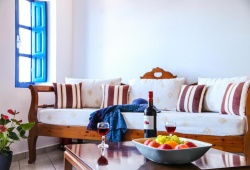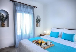 All of the apartments are perfect for families and couples alike because they are independent, self-contained, and can house up to 4 people. A romantic and enjoyable stay is guaranteed by the ambiance created by the Cycladic building, classic furnishings, and modest yet tasteful design. The apartments come with airconditioning, bathroom with amenities, hairdryer, refrigerator, kettle, TV, Wifi and balcony. Wifi access is available in all areas and parking is free for your private or rental car.