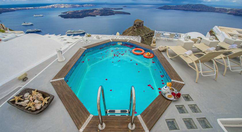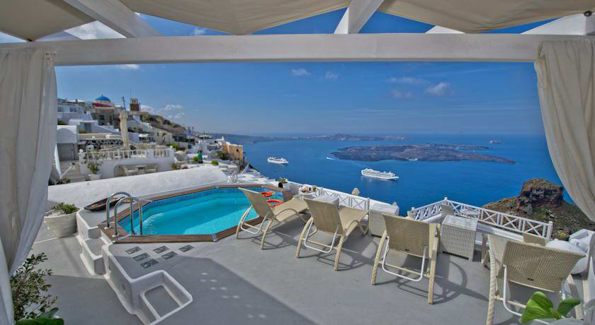 Thea Apartments, which provide breathtaking views of the Caldera and volcano from its open-air pool and balcony, are centrally located in Imerovigli amid the picturesque clifftops of Santorini. The vibrant capital of Santorini, Fira, is just 2 km away from Thea, while Oia, which is well-known for its breathtaking sunsets, is only 5 km away. Thea Apartments are ideally situated in the heart of Santorini.