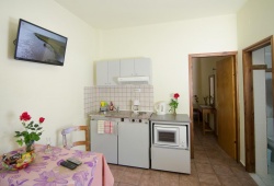 The Kalithea Apartments are a wonderful surprise in the picturesque seaside town of Kalyves in Chania, Crete. These contemporary apartments with Cretan architectural features overlook Souda Bay and provide an amazing view of the limitless blue sky and surrounding vegetation. It is a perfect setting, well-known for its friendliness and delightful service. The accommodation is comprised of twelve completely equipped apartments including windows on both the front and rear of the structure. All of them have a view of the sea and are cool, bright, and cozy. They also have a bedroom, a sitting area, and a bathroom, which are three distinct rooms. Kalithea Apartments welcomes guests with a welcome box filled with water, coffee, and cookies. Within 200m and 50m in Kalyves, respectively, are a restaurant and a mini market situated near the property.Kalithea Apartments is 6km from the port of Souda Bay. Chania City is at a distance of 16km and Chania International Airport is 20km away.