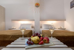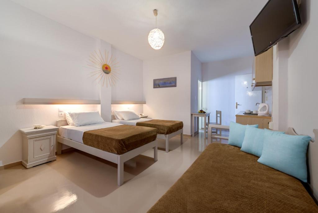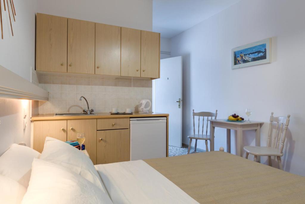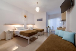 In Kamari, a well-kept tourist village, one may find a doctor, pharmacy, bank, market, restaurants, bars, open-air cinemas, dive centers, bicycle rentals, extreme water sports, guided hiking and climbing routes, and a host of other amenities. Anyone can easily travel to Ancient Thira from Kamari, as well as explore the winemaking secrets, sample the local cuisine, stroll through Mesa Gonia, the village's winding cobblestone alleys, and admire the beauty of the Byzantine church of Panagia Episkopi. Book Kamarela Studios in Santorini now and enjoy your stay.