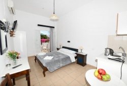 Situated in the heart of Kamari, a well-liked beach resort on Santorini island, the Sunflower Aparthotel is easily accessible, only 300 metres from the black sand beach and even closer to the town core with its authentic Greek restuarants, tavernas, and stores. The hotel has a stellar reputation for genuine hospitality. The air-conditioned studios and apartments at Sunflower ApartHotel have a private balcony and traditional decor. They have a private bathroom with shower, a kitchenette with eating area and a satellite TV. Enjoying the Aegean sun, you may unwind on the patio surrounded by bougainvillaea and trees. Sunflower Hotel offers all the contemporary amenities needed for a fantastic getaway. You may unwind for a while by the pool with the pool bar where you can have a coffee, drink, and some snacks.