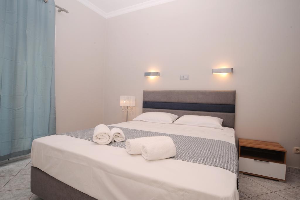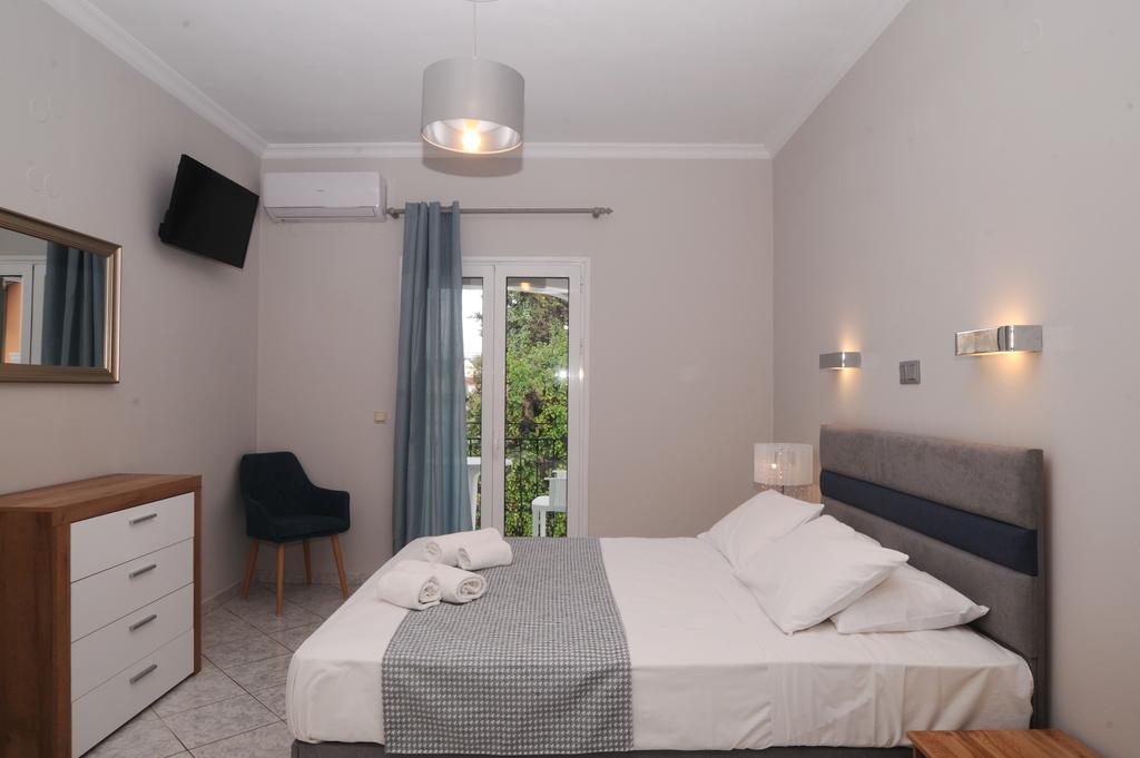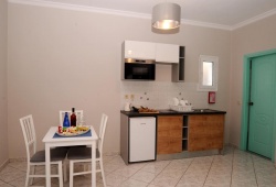 The Kalimera Apartments is a small and friendly, family owned complex located in Kassiopi, Corfu. The necessity to provide cozy, contemporary accommodation in the "heart of the town" gave rise to the concept for this establishment. The rooms' qualities include comfort, brightness, and cleanliness. There are eight completely furnished, self-catering studio apartments (2 and 3 people) with all the facilities and services of a hotel. Every studio apartment has a balcony, satellite TV, air conditioning, safety deposit box, and free Wi-Fi. High chairs and baby cots are provided upon request. Every apartment has a kitchenette with all the appliances needed, including a refrigerator, stove, microwave, kettle, and sandwich maker. A private bathroom including a hair dryer and a shower is available. Kalimera Apartments in Corfu provides a snack/pool bar and an outdoor swimming pool with sun loungers and umbrellas.