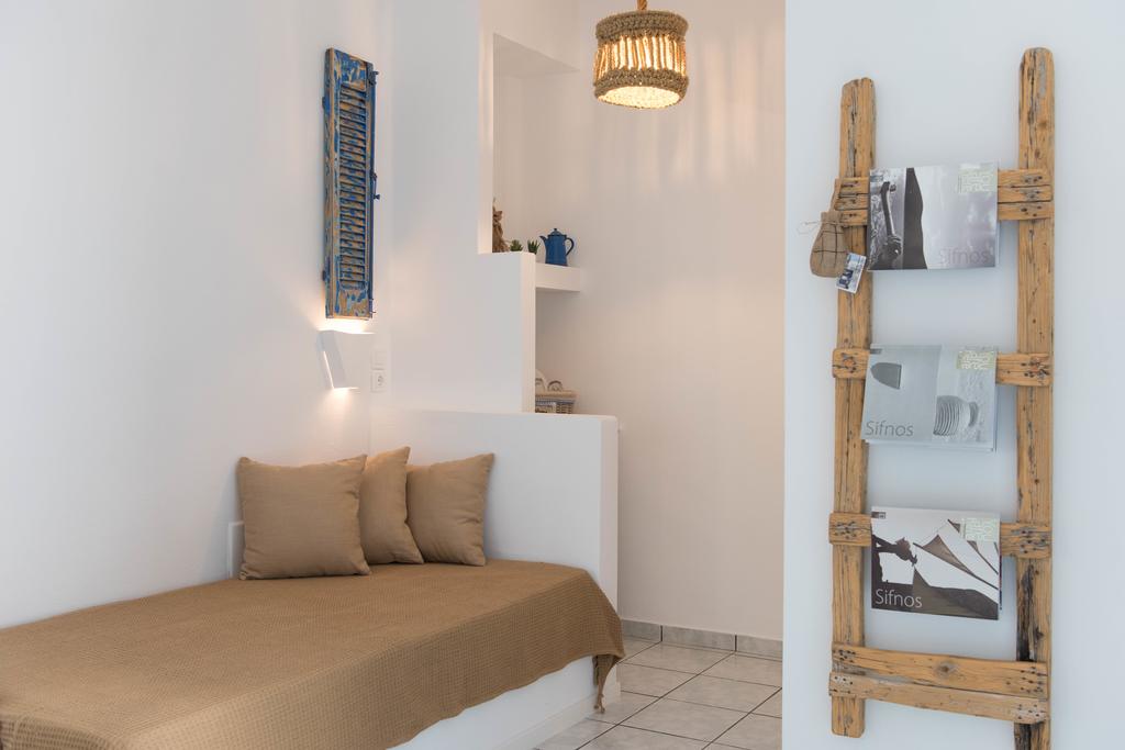 On the way to Kastro, one and a half kilometres away from Apollonia, you will discover To Maro Hotel, built at the edge of the road on a crag with a view to the east and to the islands north and east of Sifnos. To Maro has 9 spacious rooms to let which can accommodate 2-4 guests. The rooms are equipped with all modern comforts, and goal is to offer you an unforgettable and relaxing vacation in Sifnos. All accommodations are equipped with television, air condition, hairdryer, kettle, mini fridge, smoothing iron and ironing board, wifi and balcony with view to the sea and Kastro. Some units also have an equipped kitchen. There is the possibility of parking your private or rental car.