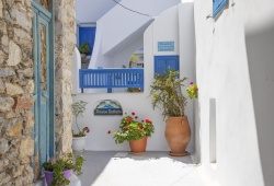 One of the biggest natural ports in the Aegean Sea is not far from Katapola, where Pension Barbara is located. The town of Katapola is centered around the homonym cove. A supermarket, restaurants, and a bar are located there, while the beach is 100 meters away. If you are looking for the best place to stay, Pension Barbara in Amorgos is the ideal option.