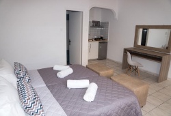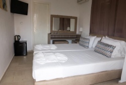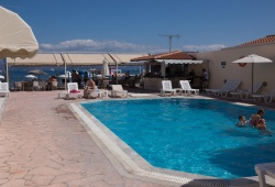 Among hotel facilities of Stavros Beach, is a swimming pool where guests may enjoy the perfect spot to soak up the sun on the outdoor terrace. All day long, light snacks and refreshing drinks are available at the pool bar. Sport enthusiasts may enjoy water activities at the neighboring beach, including jet skis, speed boats, and floats (local fees apply).
