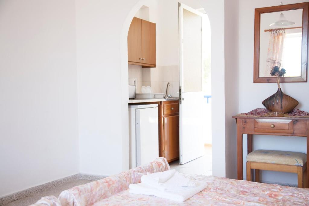 Maritsa Studios in Kos are charming, modestly furnished studios tucked away in lovely gardens, a short distance from the main road and near Kamari Bay in Kefalos. A 10-minute stroll will take you to the sandy beach, and there are several restaurants, stores, and bars in the area to suit every taste. The well-appointed kitchenettes in the spacious, light-filled rooms include with an electric kettle, refrigerator, and toaster. Every studio has a separate shower-only bathroom. Each apartment's balcony provides a magnificent view of the breathtaking Aegean Sea.