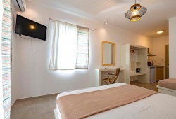 Alisea Resort consists of double rooms, which can accommodate a third person. Enjoy breathtaking views of the azure Aegean Sea from the comfort of your private balcony. From Polyaigos to Apollonia Mylos, the panoramic vistas will leave you in awe. The bathrooms and private verandas, complete with wooden pergolas, showcase the distinctive Cycladic style. Room amenities come with a fully equipped kitchen, air conditioning, TV, private bathroom and hairdryer. There is free parking for your rental car and wifi access is covered in all areas. Experience the perfect harmony of luxury and tranquility at the Alisea Resort in Kimolos.