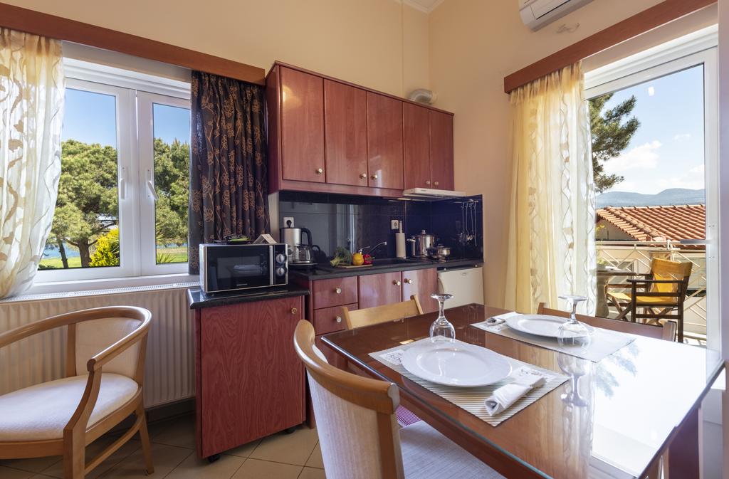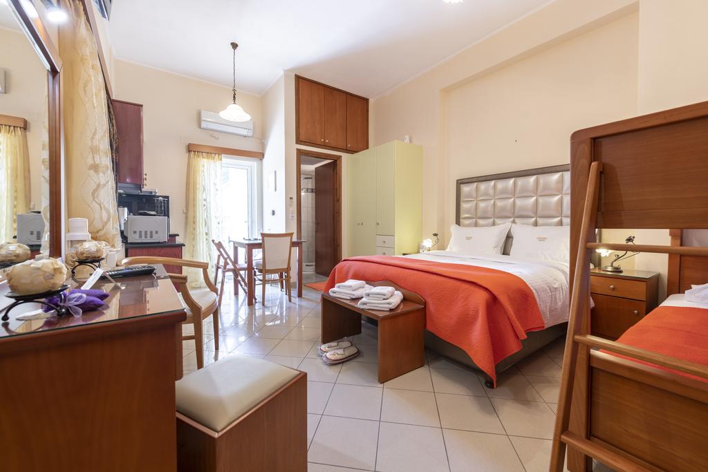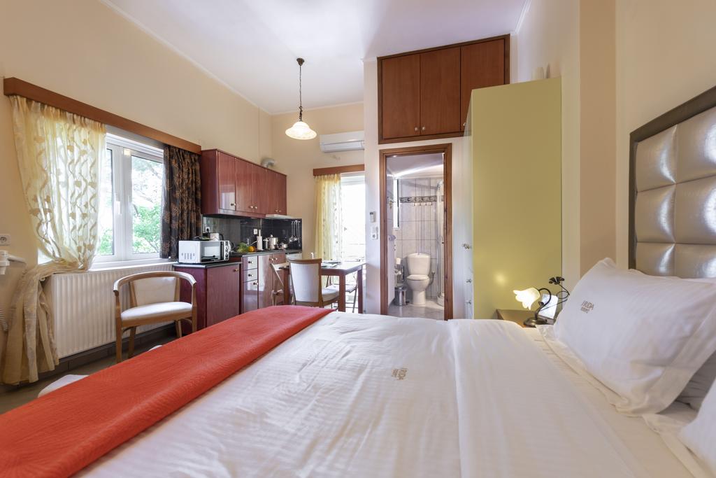 All of the rooms are equipped with everything a family could possibly need, while yet managing to combine elegance and comfort. The Irida Resort Suites provides 20 spaces in a free gated parking area with natural tree shade. Also, practically everything is accessible by foot from the hotel to the town center. Consequently, you will feel completely at home. There is a bar to have a drink after a long day sightseeing in Kyparissia or other regions of Messinia, and barbeque facilities to get together for leisure. If you are searching for the ultimate accommodation near Kyparissia, the Irida Resort Suites are the perfect choice.