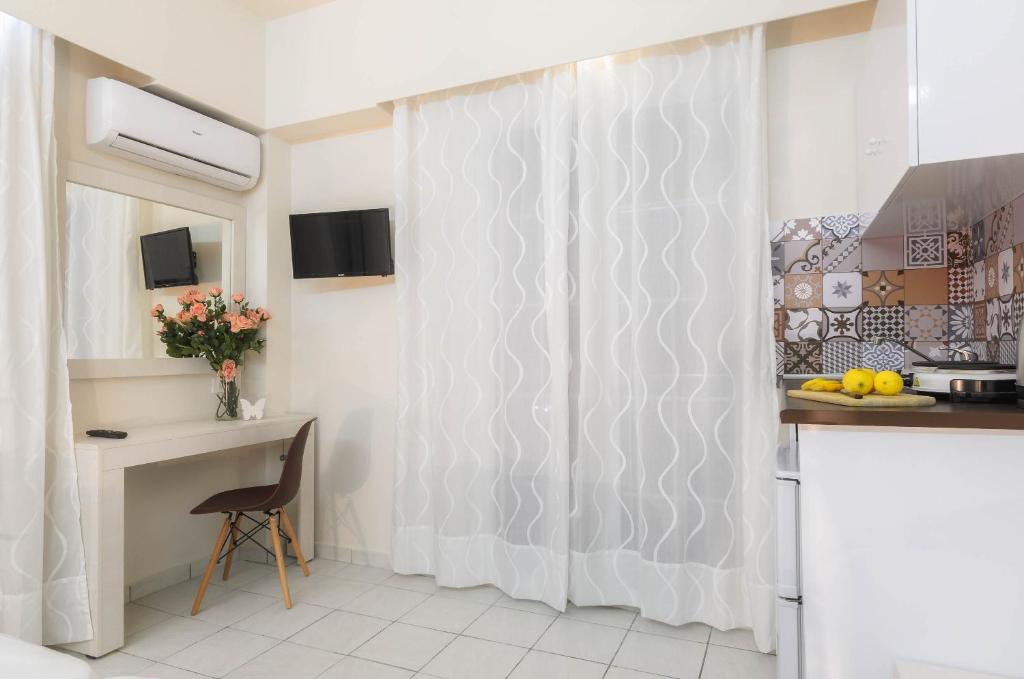 A family-run beachside establishment, Mouria Studios & Apartments is situated in the center of Laganas in Zakynthos, only a short distance from the sea. Every studio and apartment has a shower-equipped bathroom, a kitchenette with basic appliances, utensils, and a safe box. The majority of studios and apartments include furnished balconies with breathtaking views of the sea. Enjoy the beachfront in Laganas to enjoy your day of swimming and explore the shops located on the main road. For autonomous and laid-back vacations, Mouria studios & Apartments might be a great option because everything you might need or want is close by and accessible by foot. From here, you may choose to explore the entire island of Zakynthos or just relax.