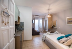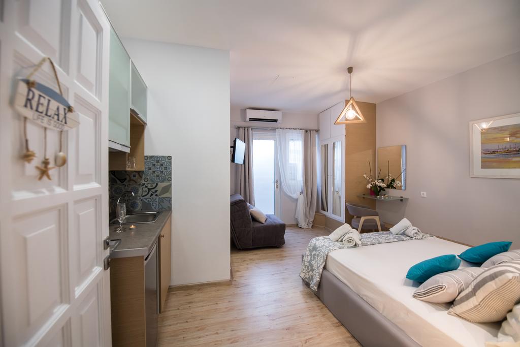 Situated in Lefkada town, Lefkas City Apartments provides tastefully furnished apartments complete with private balconies and fireplaces. On the ground level of the lodging, there is a snack bar that serves beverages and breakfast. All self-catering apartments in Lefkas City have canopy beds, hardwood and tiled flooring, a lounge space, and a fully functional kitchenette. Every apartment has a flat-screen TV, a safe, and air conditioning.