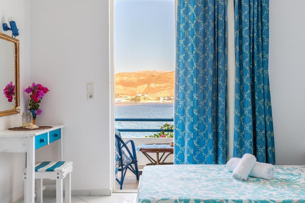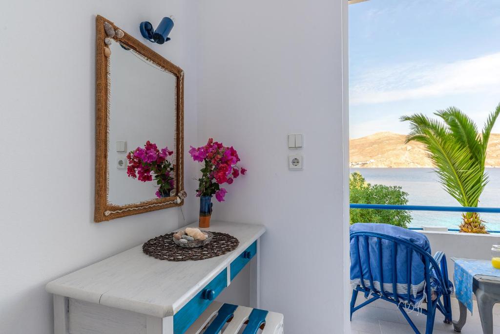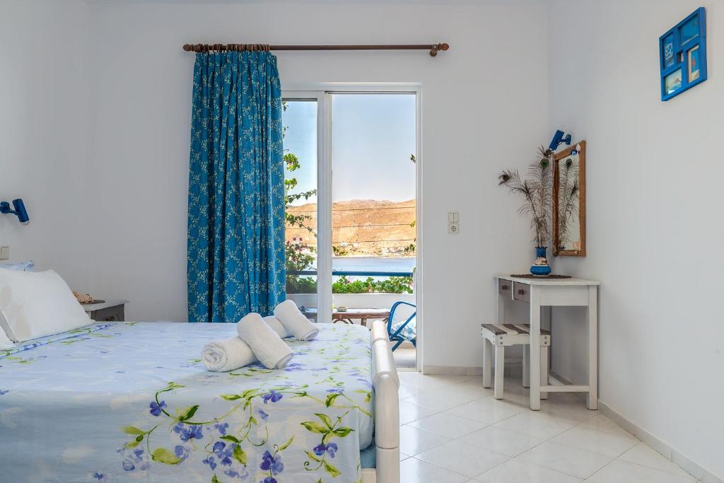 Antoniadi, which is situated on the east side of Livadia Bay in Tilos, is made up of ten large, light-filled rooms spread across two floors, with a large garden and terrace beneath the units. The entire property is two floors above the main road. From every location on the resort, guests may enjoy the breathtaking view of the sea and the entire Livadia Bay. Every room has a large balcony with a view of the sea. Amenities include air-conditioning, a private bathroom with a walk-in shower, a kitchenette, a dining table, and outdoor furniture, ensuring a comfortable stay. There is free Wifi throughout the area. Just below is a small beach with pebbles and pristine water that's perfect for snorkeling or relaxing in the summer sun. Antoniadi Rooms in Tilos is the ideal location for restful vacations, peaceful settings, and first-rate service.