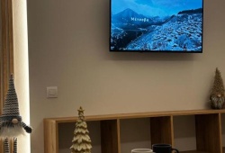 Abete Luxury Apartments is a brand-new, contemporary apartment building in Metsovo. It is on the main road and just 500 meters from the town square. It provides large apartments with family areas and two bedrooms. Free WiFi, free on-site private parking, and a terrace are features of every apartment. A fully furnished kitchen with an electric kettle, hob, oven, and refrigerator is available to guests. A dining table, a seating space, and streaming services are further features.