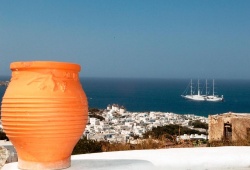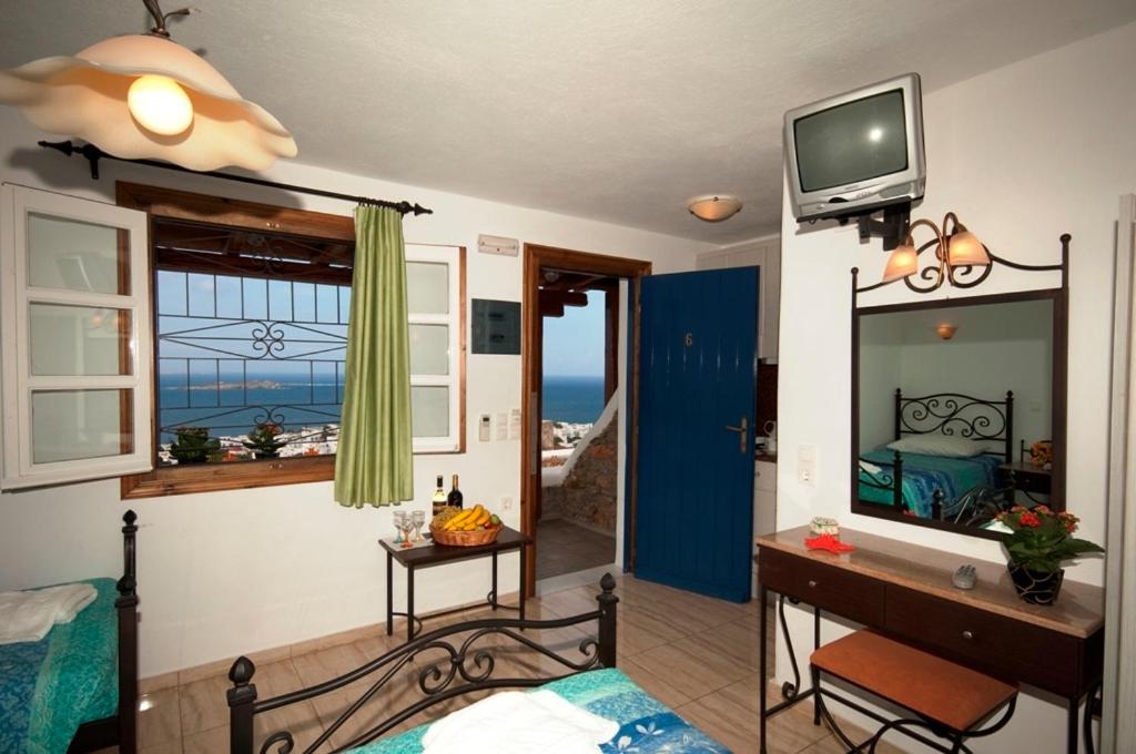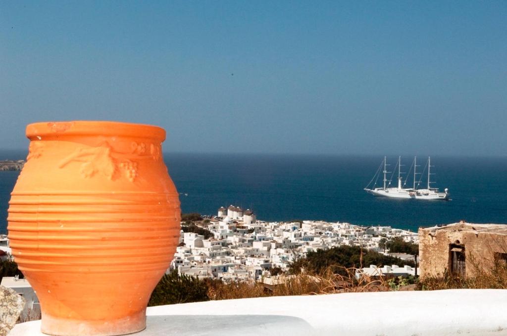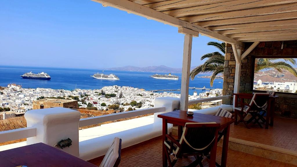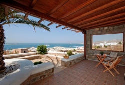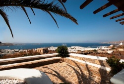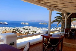On the vibrant island of Mykonos, Germanos Studios is situated in a unique spot just above Mykonos Town (Chora). Constructed in adherence to the Cycladic architectural style, its lofty location offers a breathtaking panoramic view of the Aegean Sea, complete with its breathtaking sunset. The distinctive the town of Chora is 500 meters away, Megali Ammos Beach is 1 km away, Ornos and Platis Gialos Beaches are 3 km away, the harbor is 3 km away, and the airport is 3 km away.