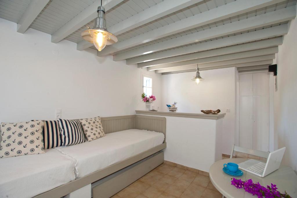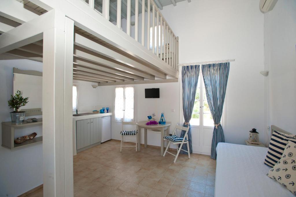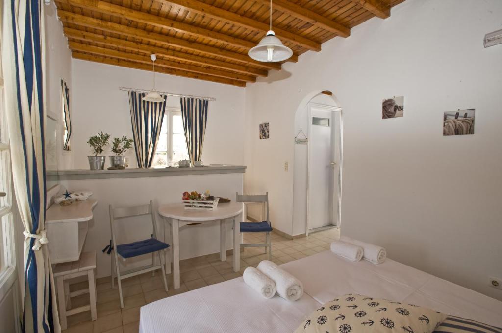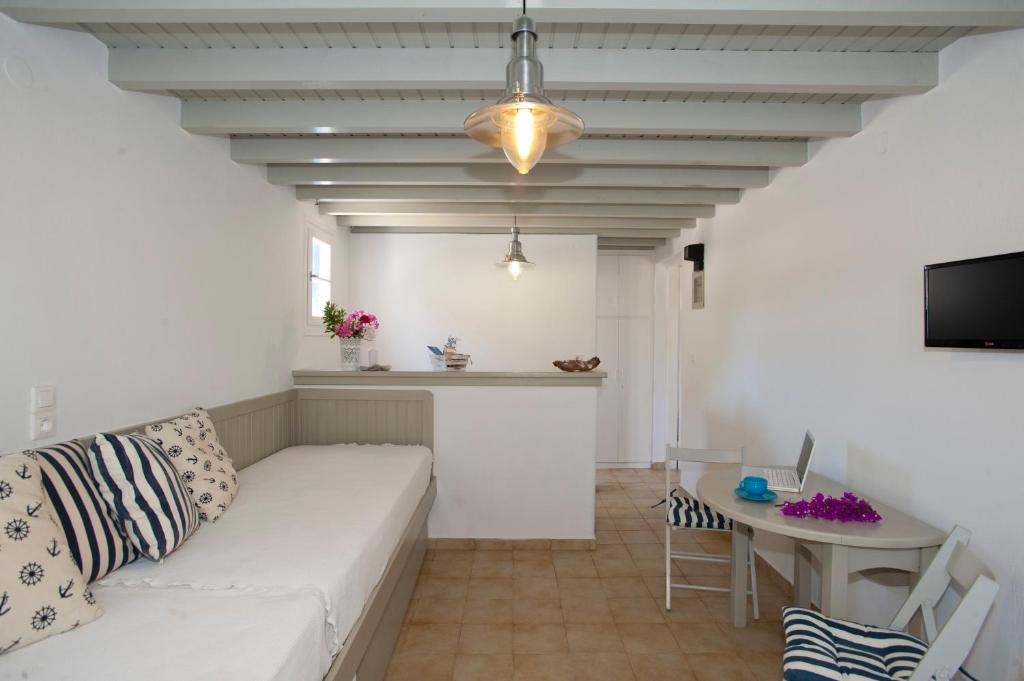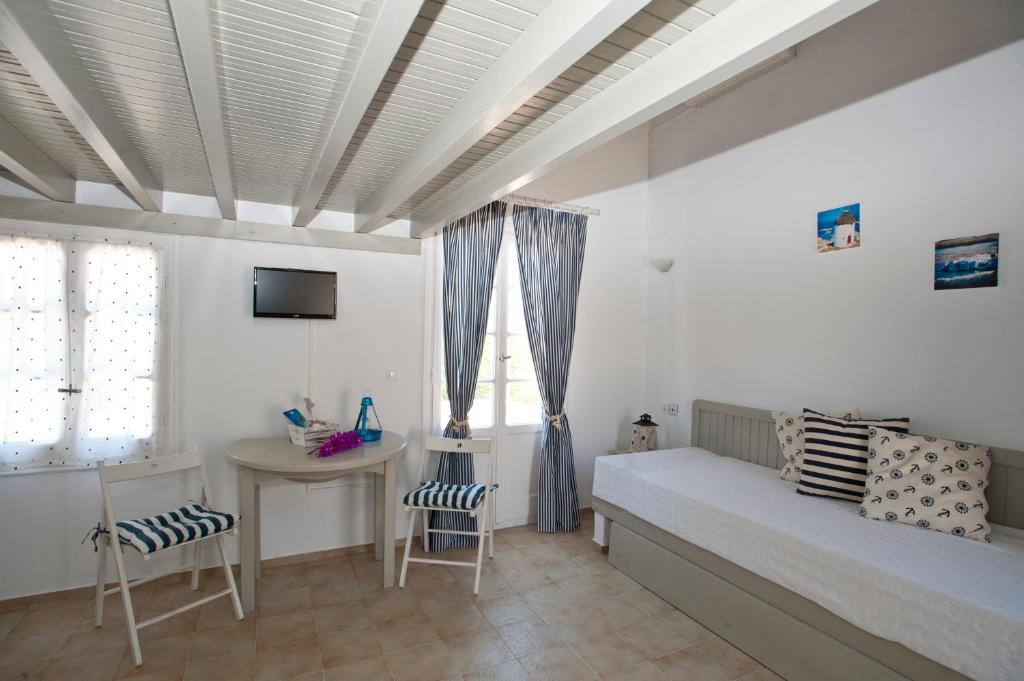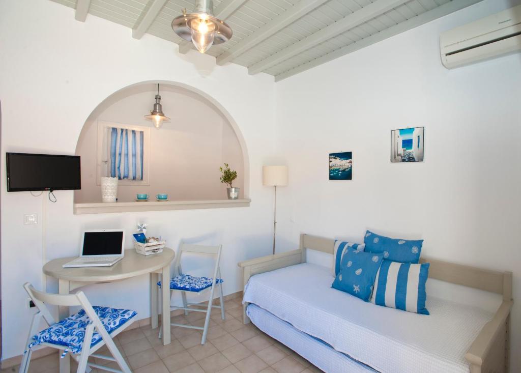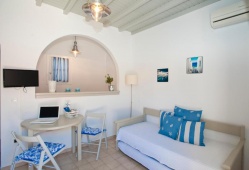 The Gryparis Club Apartments are ideally situated in the heart of the Aegean, with Mykonos serving as a hub for the Cyclades Islands' overall breathtaking scenery. It is traditional and attractive, preserving the distinctive Cycladic architecture, contemporary and hospitable, and it wins the attention of even the most discriminating tourist. For two people seeking excellent accommodation close to Mykonos Town, the Gryparos Club Apartments is a great option. The apartment is well furnished, roomy, and perfect for a relaxing stay. Gryparis' Club Apartments provides air-condition, patio with flowers or a balcony. Also a kitchenette with a refrigerator and cooking hobs is included in every studio and apartment, which has Cycladic-style décor and beamed ceilings. There's a TV and an eating space. A mini market and bus stop are at 50m. Several restaurants, bars and shops can be found at a distance of 800m from the property. Gryparis Club Apartments is an ideal self-catering accommodation in Mykonos Town, the place famous for shopping, beach parties and sightseeing.
