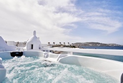 Little Venice is constructed with consideration for the regional architectural style, each white-painted suite features built-in beds, hardwood ceilings, and Coco-Mat bedding. Free WiFi, an iPod dock, and a smart TV with satellite channels are among the amenities. Free toiletries, slippers, and bathrobes are provided. Additionally, some apartments have an outdoor hot tub or spa.