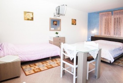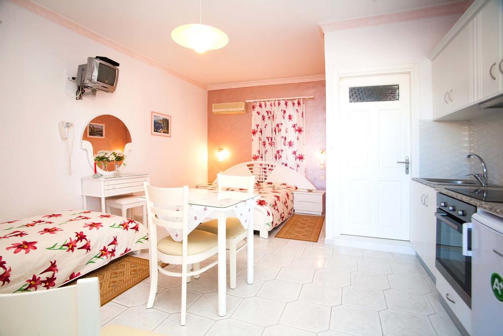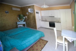 The Maria's Studios are situated in Sykia, near the beach at Myrties in Kalymnos. The sunset and the stunning view of the little island of Telendos make for a very alluring experience. Enormous patios offering breathtaking views provide each apartment an additional area for refreshing and distinctive summertime experiences. There are 6 spacious and spotless studios, tastefully renovated with air conditioning, kitchenette and TV, will offer guests a sense of calm and relaxation. All Maria's studios are doubles. The two of them, adding bed, can be converted into triples.