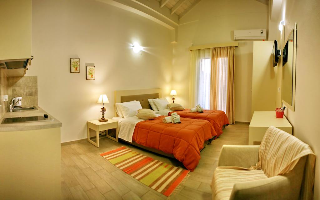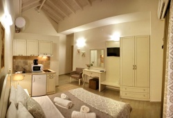The opulent Victoria Studios in Lesvos awaits you just five minutes' drive from the island's main city of Mytilini, in the bustling area of Panagiouda with all of its restaurants, cafés, and seafood taverns perched above the harbor. Gracious, kind, and ready to provide Greek hospitality all year round with opulence, coziness, and beautiful amenities. Victoria is a self-catering accommodation with its main feature of a kitchen to cook your own food.