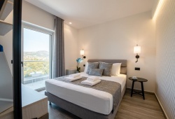Situated in a picturesque orange orchard next to Nafplio, the family-run Frunze Luxury Apartments provide visitors with a serene and pleasant stay. Its contemporary style includes a number of facilities, such as a breakfast served in-room and a swimming pool. This Nafplio hotel offers the ideal fusion of contemporary conveniences and a tranquil environment, enabling visitors to unwind and take in the breathtaking scenery. The main room feature of Frunze apartments is the fully equipped kitchen and the balcony which overlook the views of Palamidi Fortress or the mountains.