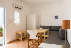 Janos Studios are located at the heart of Naoussa village in Paros in about five minutes on foot. They are spacious and cleverly built to provide visitors solitude. If you prefer peace, rocky surroundings, and deep seas, you may swim directly in front of the studios. Janos is a compact building with six contemporary studios and apartments. Along with a hair dryer, TV, air conditioning, double-glazed windows, a fully functional kitchen, a small dining area, and a shower bathroom, they also have a terrace or veranda with views of the village or the sea. Parking is available in plenty of spaces. Every day cleaning is provided. Janos offers studios and apartments that may house two to five people. There are also some mini-markets near the studios for your convenience in the Naoussa area. The area of Agioi Anargiri is very quiet and considered to be one of the prettiest spots in the village of Naoussa. Janos Studios is the ideal accommodation option if you want to go on holiday to Paros.