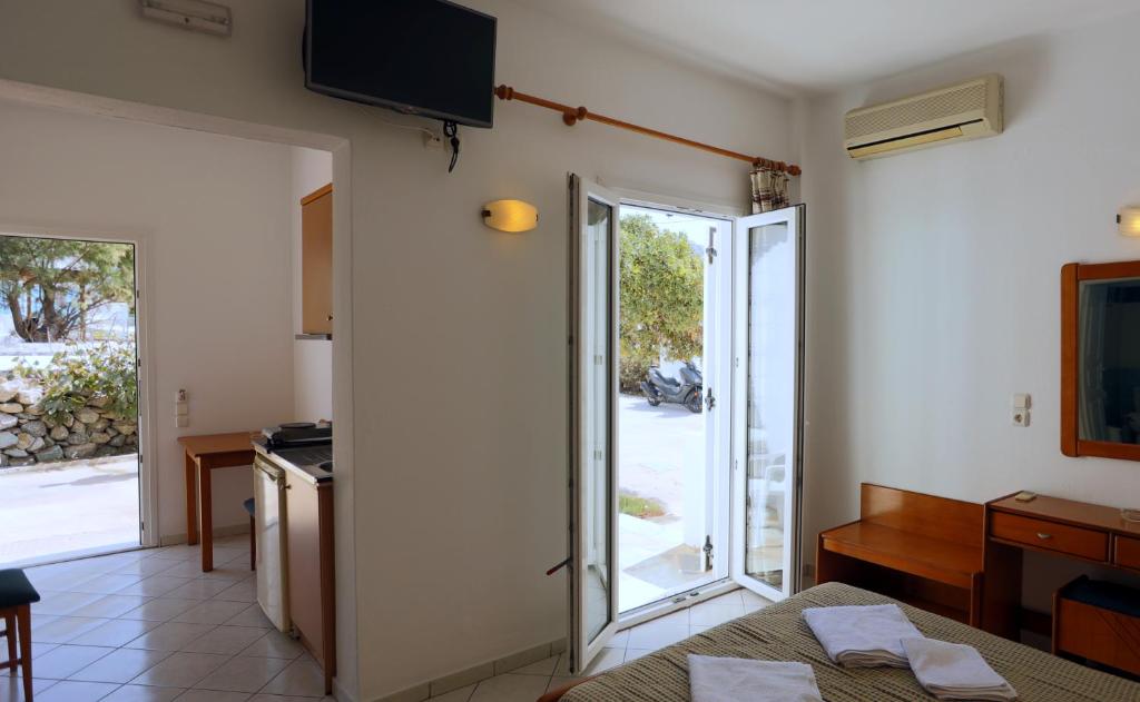 Peters Studios is a guest house with 14 rooms in Ornos, Mykonos. This aparthotel offers free WiFi, a flat-screen TV, and a fully functional kitchenette with a hob and refrigerator. The aparthotel has linens and towels available. The accommodation has a private bathroom, heating, and air conditioning. Ornos beach where Peter Studios are located, is one of the most popular beaches of Mykonos. This amazing beach has enough to offer everyone, whether you're looking for an adventurous day, a relaxing one, or something in between. Ornos Beach boasts everything a thrill-seeker might want, including windsurfing, jet skiing, and parasailing, in addition to lounge chairs, umbrellas, and sun beds for soaking up the Mediterranean sun.