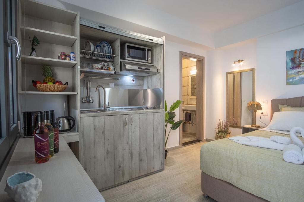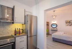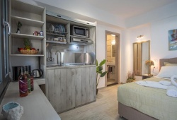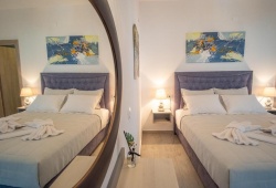 The Serenity Luxury Suites are located in the heart of Parga, Epirus, and it takes just a minute to walk to Krioneri Beach and the town center. Valtos Beach is about 1.7 kilometers away from the accommodation, while the Parga castle is around 1 mile away. The apartments are also in a very handy location, with restaurants, bakeries, and supermarkets all within walking distance. The building was recently repaired and consists of one two-bedroom apartment and three fully furnished studio units. Air-conditioned suites with a closet, coffee maker, refrigerator, cookware, safety deposit box, flat-screen TV, terrace, and private bathroom with shower will be available to visitors staying at the condo hotel. Every accommodation has a kettle, and some have fully functional kitchens with a hob, oven, and toaster. In Serenity there is a coffee shop and wine bar for your amusement.