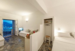The Archipelagos Apartments in Paros, Greece, provide chic accommodation with expansive views of the bay of Parikia and the sea. There are eight vacation apartments and open-plan studios available at Archipelagos. They are situated on a sizable piece of manicured ground and have been thoughtfully constructed to ensure every comfort in a visually pleasing setting. Every one features a kitchenette with cooking hobs and a refrigerator. There is a living room in certain apartments. The historic location of Delion Temple is within ten minutes' walk away for visitors. 2.8 kilometers is the distance to Parikia's center, which has stores, bars, and restaurants. Families and couples searching for a quiet, unwinding place to spend their vacation on Paros will find peace and relaxation at the Archipelagos Apartments in Parikia. A quaint, character-filled lodging option on Paros with warm, welcoming local proprietors.