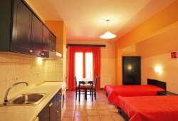Ikos Studios is a newly built accommodation located on the hill of Alonissos port "Patitiri". Welcomes you with the guarantee of the best accommodation and warm hospitality in its new and elegant rooms of various types. In a quiet and peaceful environment, enjoy the view of the picturesque village of Alonissos and the tremendous views of the Aegean Sea. Ikos Studios are a self-catering accommodation consistinig of double and triple rooms, all with a fully equipped kitchen, fridge balcony with table and seats, bathroom, heating, TV, AC, ironing, parking, and wireless internet, (WI-FI). Ikos Studios is located 400 metres from the nearest beach, "Rousoum Yalos," and 500 metres from Alonissos port. The nearest bus station and minimarket are just 100 metres away.