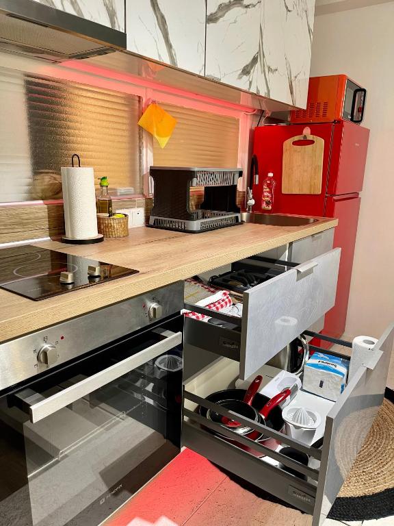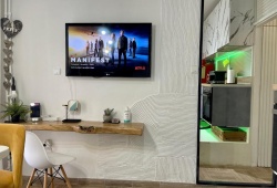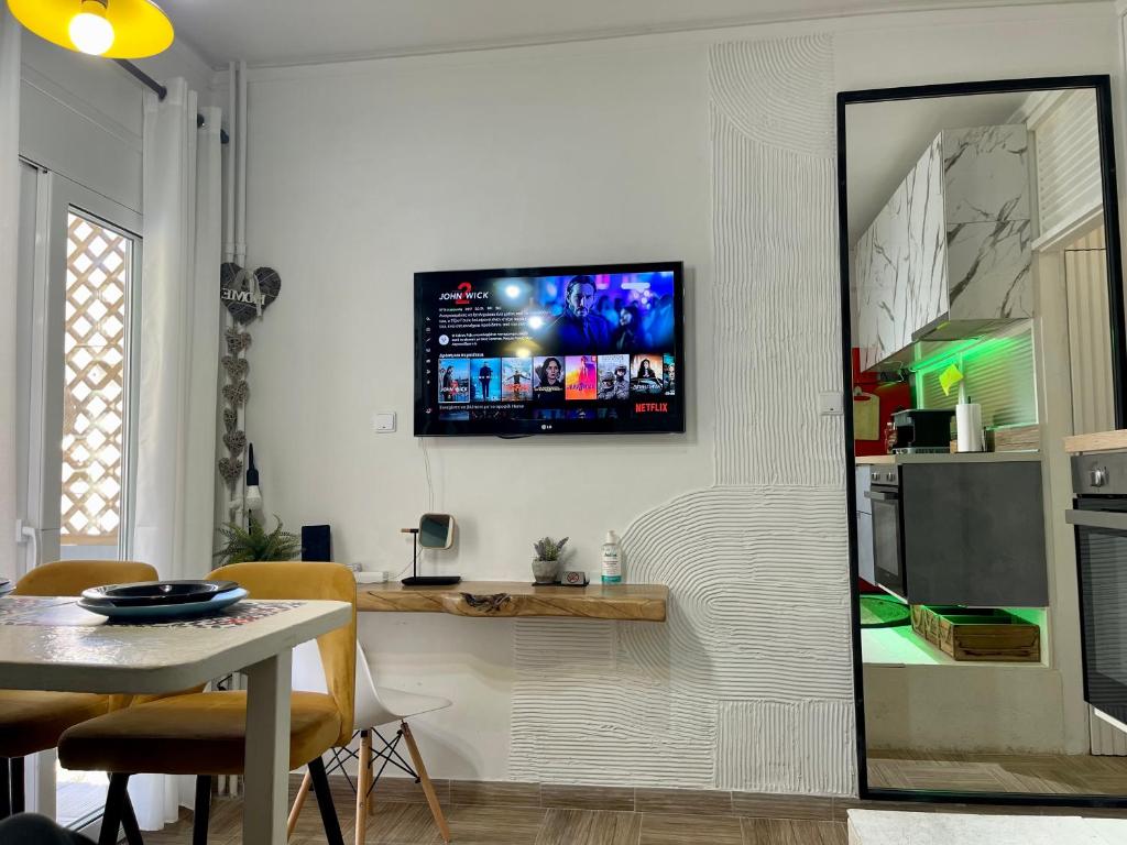 The Patras-based OikiaStudios has a balcony and air conditioning. It contains an ATM and is 300 m from Psila Alonia Square.This apartment has a living area, a kitchen with a refrigerator and microwave, a bathroom with a hot tub, and a flat-screen TV. It also has one bedroom. There are bed linens and towels available. There is a patio on the property, and hiking is close by. The harbor of Patras, the Roman Theatre, and the Church of Saint Andrew are among the well-liked tourist destinations close to Oikia Studios. Araxos Airport, which is 29 kilometers from the lodging, is the closest airport.