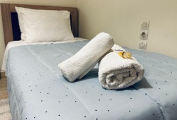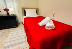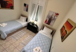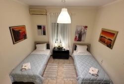 With all the conveniences of a contemporary house, Patras Center Apartment is a stunning rental unit. It is tastefully furnished to give visitors a cozy, private atmosphere and to ensure their comfort. There are two single beds in the bedroom and a sofa that can be made into a bed in the open-plan kitchen-living area. In addition to free Wi-Fi, the residence offers shampoos, towels, and bed linens. There are also smoke detectors, air conditioning, a sound system, and a flat-screen TV in the room. Our guests can reach the little paved courtyard at the back of the apartment through the kitchen door. The Patras Centre Apartment is situated in a quiet area near the port, the Hospital of Agios Andreas, the Pampeloponnisiako Stadium, the Pepanos swimming pool, the Olympion Therapeutrio, and the center of Patras. There is parking on the grounds and outside. The apartment is conveniently located near the municipal bus station, which makes frequent trips to and from the center. It takes about fifteen minutes to walk to the shopping center. A well-known supermarket is 0.5 km away, while a mini market is less than 50 m away.