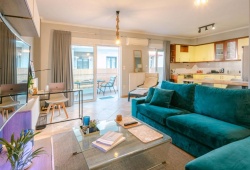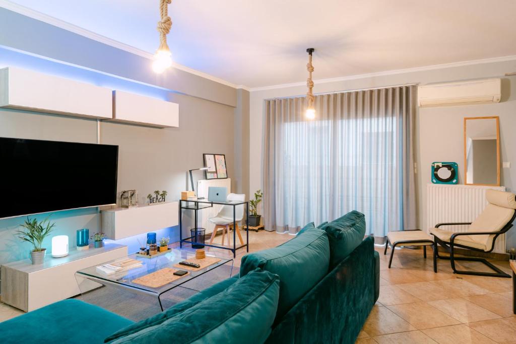 The Art Suite is a chic and contemporary apartment with a sophisticated design that is situated in the lovely city of Patras. Features a dining area, a fully functional kitchen, two bedrooms, two bathrooms, bed linens, towels, a flat-screen TV with streaming services, air conditioning, washing machine, and a terrace with views of the city. Additionally, this apartment has a terrace that may be used as an outside eating space. This unit is non-smoking and allergy-free. The Art Suite is 600 meters from Psila Alonia Square and 1.4 km from Patras Port. Araxos Airport is 37 km from the property.
