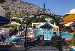 The Chrysanthi Studios & Apartments can be found just off the main thoroughfare in Pefkos, Rhodes, and here you will find Yannis, Maria and their children, Vangelis and Chrysanthi, who own and personally run this lovely hotel and pool bar-restaurant. Nestled in the lovely, well-maintained Pefkos gardens, with their olive trees, fragrant lemon and orange trees, the well-known Rhodes hibiscus flowers, and an abundance of scented plants, this tranquil oasis is only a short distance from the town centre.