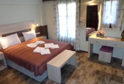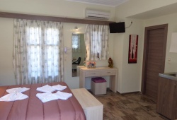 Niki Studios is a waterfront property with breathtaking views of the Aegean Sea, situated in Petra, Lesvos. You may choose to relax in the communal sauna or jacuzzi, in the garden, or by the pool when staying in one of the brand-new, luxury studios. The closest organized beach is only 200 meters away, and the breathtaking sea view makes this the perfect place to call home for the summer. Delightful breakfast is provided each morning and is included by the cost of accommodation. Every Niki studio has a refrigerator, free WiFi, air conditioning, and 32-inch TVs. The village market in Petra, which has restaurants, cafés, a variety of stores, pharmacies, a doctor's office, ATMs, etc., a five minutes' walk away. Petra has one of the best sandy beaches of Lesvos. High time and memorable experiences are guaranteed at Niki Studios. Book Now! Enjoy your holidays in Lesvos!