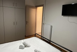 Adelais is a cozy one-bedroom apartment on the second floor that can accommodate both singles and couples. It has easy access to all kinds of entertainment, shopping, museums, and cultural events because it is close to Piraeus' center. The apartment has a fully furnished kitchen, a bedroom with a double bed, a bathroom, and an open-plan office area with a small dining area. There is a washing machine, Wi-Fi in all areas, and the accommodation is air-conditioned. The Adelais Apartment is 2.6 km from Piraeus Port and 1.1 km from Piraeus Railway Station.