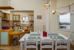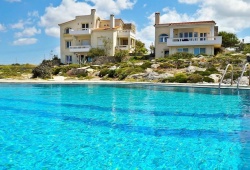 The Kiani-Skoulas Villa and Apartments are built upon a 11,000 m2 area located beside a beautiful rocky seafront looking out to the Mediterranean. The site itself is 1 km away from the small bay of Stavros and 4 km away from the village of Horafakia in Akrotiri, Chania.