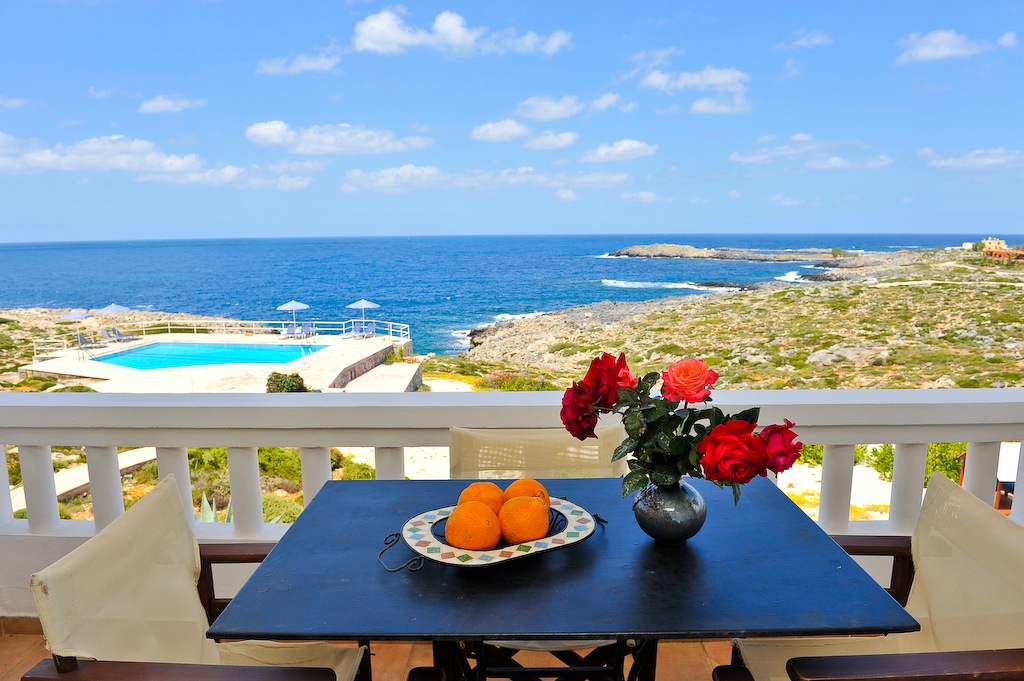 From there, you can enjoy fabulous sunsets and a view of both the Mediterranean Sea to the west and the White Mountains to the south. You can relax sitting out on the large verandas, spend time in our beautiful flower garden, prepare a barbeque, and let the children play in the playground.
