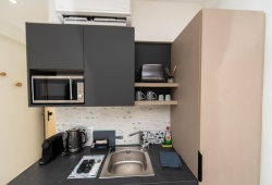 Ocean View Studios is located in the charming and historical area of Plomari, just 80 meters from the well-known Agios Isidiros Blue Flag Beach. There is a special rooftop where visitors can have sundowners and take in Lesvos' breathtaking sunsets. Newly remodeled apartments come with individual bathrooms, balconies, and air conditioning. Every room has a work desk, a kitchenette, and soundproofing to provide a comfortable stay. Private check-in and check-out services, WiFi throughout the building, and an outdoor sitting area are all included.