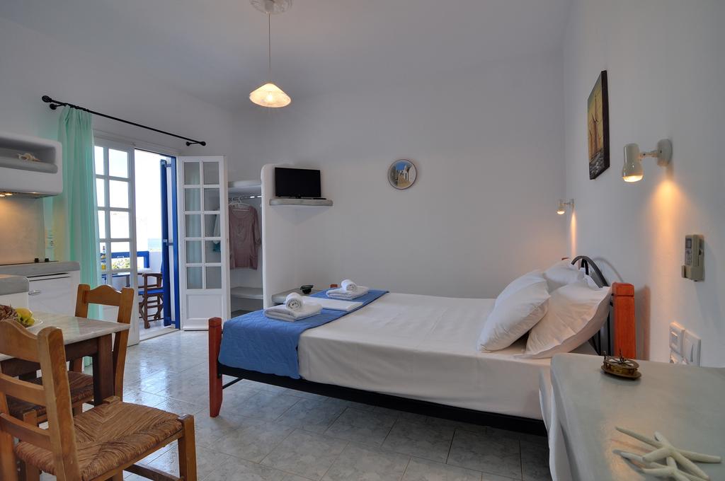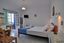 Situated in the picturesque fishing village of Pollonia, Mylos, on the Pelekuda peninsula, the Captain Stavros Rooms & Apartments are only 50 meters from the sea. The Captain Stavros Rooms and Apartments consist of seven spacious rooms: three with twin beds and four with twin beds. A kitchenette including a hot plate, coffee maker, kettle, and mini fridge is included in each of the lively and colorful studios. In addition, it features a TV, a direct-dial phone, air conditioning, and a separate bathroom with a hair dryer and shower. There is free guest parking available as well as daily housekeeping services. Breakfast staples including coffee, tea, and jam are provided in the kitchenettes for guests. Captain Stavros and the harbor of Adamas are 10 km apart. The main plaza of Pollonia is only 150m away, and it has bakeries, bars, restaurants, micro markets, and a bus station to explore parts of the island of Mylos.