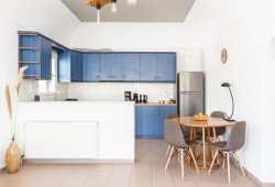 Between Pyrgos village and Fira town on the island of Santorini, there is a complex of recently constructed traditional homes called Ampelos Executive Houses. Walking along the vineyards, you may get a sense of how the people live. Every site of interest, including the harbor and airport, is close by. You will be treated well here as you deserve it. The colors of the sunrise are breathtaking from the second private balcony! You'll feel right at home in the fully furnished kitchen and the laid-back sitting area with the SAT TV and fast WiFi. When you arrive in Pyrgos, you'll feel local with a mix of restaurants and traditional shops. The finest option if you're seeking for accommodation in Santorini is Ampelos Executive Houses in Pyrgos. These stunning, recently constructed, peaceful homes provide breathtaking views of nearby villages and the azure Aegean Sea! The Fira town center is 5 minutes away by car, while the airport in Santorini is 2 kilometers away from Ampelos.