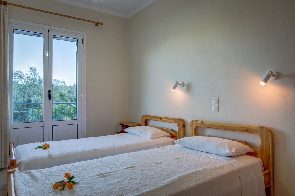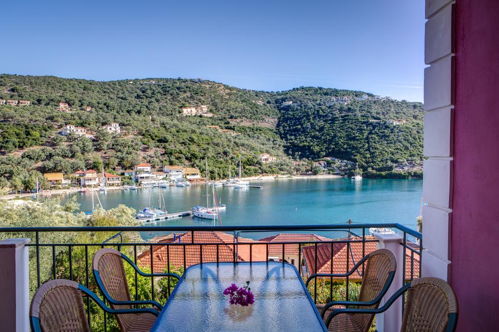 Galini Studios lies in the Sivota region of Lefkada. The property was constructed in a verdant region a short distance from the sea, boasting a breathtaking view of Sivota Bay. The village center is where Galini is situated. With a view to the port of Sivota and just 30 meters away from the sea and 70 meters from the beach, it is excellent for boat owners.