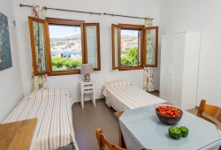 If you want to stay out of the centre of Skala, overlooking the sea and the beach, the hospitable owners Stefanos Studios also have a studio for two people and a home for up to five people in a traditional style, as well as large private verandas on the beach of Meloi. Amenities include a fully equipped kitchen, air condition, bathroom and toiletries, hairdryer, TV, Wifi and balcony. The closest tavern is located 100m away and there's a mini market around 400m away from the property. Stefanos Studios is the best location for a great holiday in Patmos if you're looking for the finest self-catering accommodation in Skala.