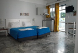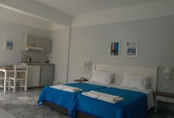 On the marvellous beach of Sougia in Crete, on the southern coast of Chania, with its unique multicolored pebbles, you will find the hotel Santa Irene. There are fifteen cozy studios and two-room apartments available for rent. A kitchenette with all the appliances needed for cooking is included in both types of rooms. This includes a refrigerator, kettle, phone, air conditioning, hair dryer, satellite TV, safebox, and hot and cold water in the bathroom. Internet connectivity via free Wi-Fi is available everywhere.