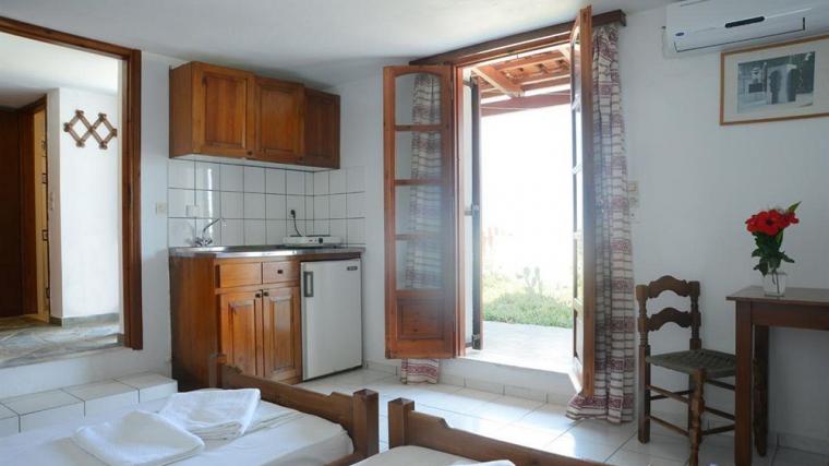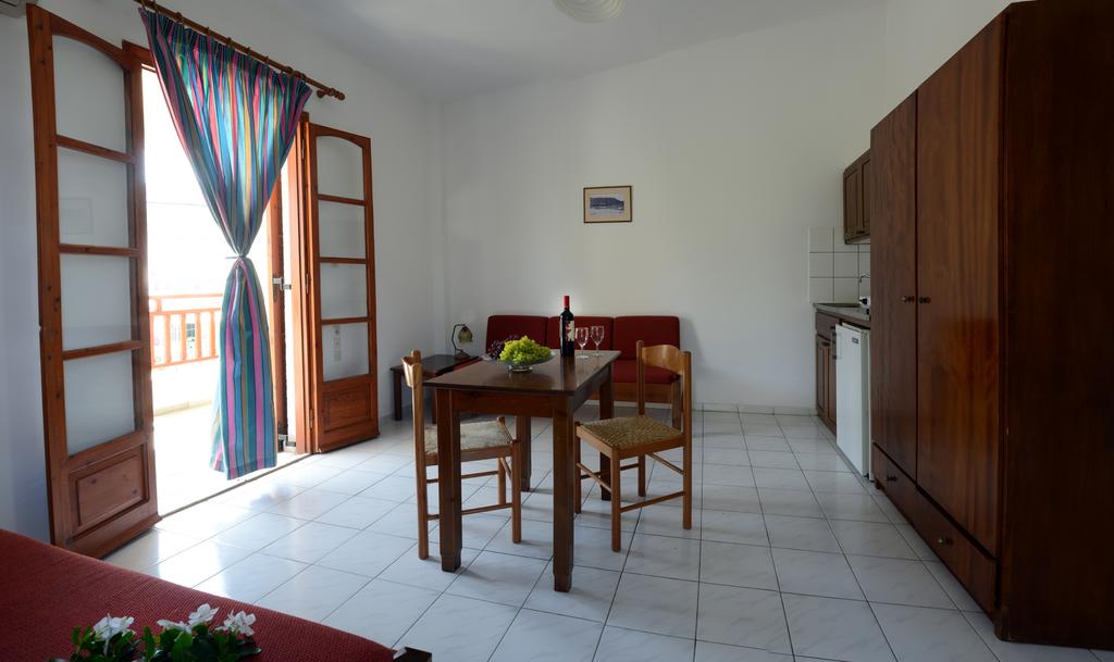 Studios and one bedroom apartments with bathroom/wc (shower only), kitchenette (cooking rings, fridge and cooking utensils), air conditioning, safety deposit boxes (extra charge), wifi, cots (on request) and a balcony or terrace.