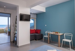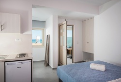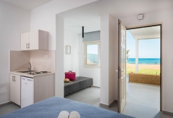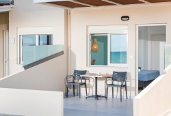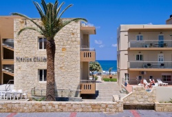 The Marine Claire Studios and Apartments are situated on one of Chania's most well-known sandy beaches, Stalos Beach, in Kato Stalos, Crete. The hotel is located about 7 kilometers from Chania's city center. With several improvements throughout the years, the hotel has been open since 1989. There are 19 total rooms available, 4 of which are flats with private bedrooms and 15 of which are studios. Seventeen of the hotel's 19 rooms provide views of the sea. The studios at the accommodation come with air condition, furnished balconies, safebox, kitchenette, kettle, TV and bathroom with toiletries. The staff at Marine Claire Apartments will assist you on any information about Chania and generally the island of Crete. There is a swimming poolto relax and soak up Greek summer. The area of Stalos where Marine Claire hotel is situated has many restaurants, a mini market, a pharmacy, an ATM and a very nice mini golf - café. The distance to the Souda port is 12 km, while the airport is 23 km away. It takes around thirty minutes to go from the airport to the hotel via taxi. A bus to the city center is also available. The hotel entrance is directly outside the bus stop that travels to and from Chania's city center. Book Now! and compare rates offered by various online booking services.