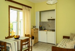 Maistreli is a small family hotel in Stoupa that offers comfortable apartments for your vacation. The accommodation is located 100 metres from the beach of Stoupa in a quiet street and the city centre in a quiet street, on a plot of 2.500 sq. m. with blooming gardens. A kitchenette with a dining space and a seating area are features of the tastefully furnished apartments at Maistreli. Every air-conditioned flat has a TV, fridge, toaster, and cooking range. There is a hairdryer and a shower in the private bathroom. The self-catered lodging has a balcony with views of the garden, Mount Taygetos, and the Messinian Gulf. Free Wi-Fi is also available. There is a bar which serves coffee, drinks and light snacks throughout the day.