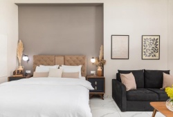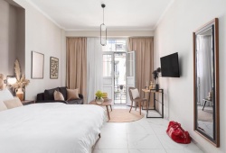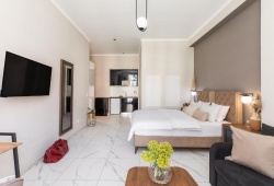 Enjoy a peaceful stay at the Black Onyx Comfort Suites, which are centrally located in Thessaloniki. It is at one of the most accessible locations, with lots of shops, restaurants, cafes, and a lively nightlife. Ladadika, Aristotelous Square, museums and the White Tower are in a walking distance. To guarantee your comfort, each apartment has been carefully designed. They come with air conditioning, a coffee maker, a refrigerator, a stovetop, a safety deposit box, a flat-screen TV, a balcony, a private bathroom with a walk-in shower, and other amenities. A kettle is provided in each unit, and some rooms have a patio and others have views of the city. Every apartment have towels and bed linens. Whether you visit the city solo or as a couple , the the Black Onyx Comfort Suites in Thessaloniki will make it a perfect base from which to explore the many iconic sights.