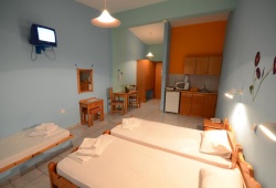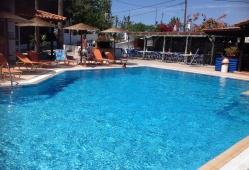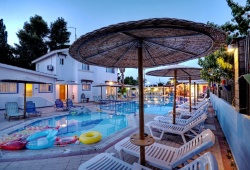 Children may swim at the small pool as you unwind with a cool drink from the pool bar while taking in the Greek sun on the pool loungers. Schedule massages or facials, body treatments, and nail services as offered at Aspro Spiti hotel. Traditional dinners and breakfast buffets are offered at the hotel restaurant beside the pool. The pool bar also serves appetizers, soft drinks, and cocktails.