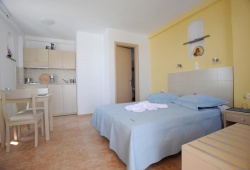 Aigaio Studios is a self-catering accommodation situated in Agios Fokas near Tinos Town. Vist the island of Tinos in the heart of the Aegean to combine pilgrimage to Megalocharis and holidays exploring its 35 beautiful villages, dreamy beaches and picturesque taverns. Experience the legendary warmth of the island combined with breathtaking views of the endless blue sea. The studios at Aigaio have all the amenities needed for a comfortable stay. They include a fully equipped kitchen (oven, fridge, coffee, pot, toaster, kettle, kitchen utensils), autonomous air conditioning (hot and cold air) in each studio, private bathroom, wifi access and balconies with sea views. Paking space is available for your private or rental car and wireless internet is covered throughout the property.