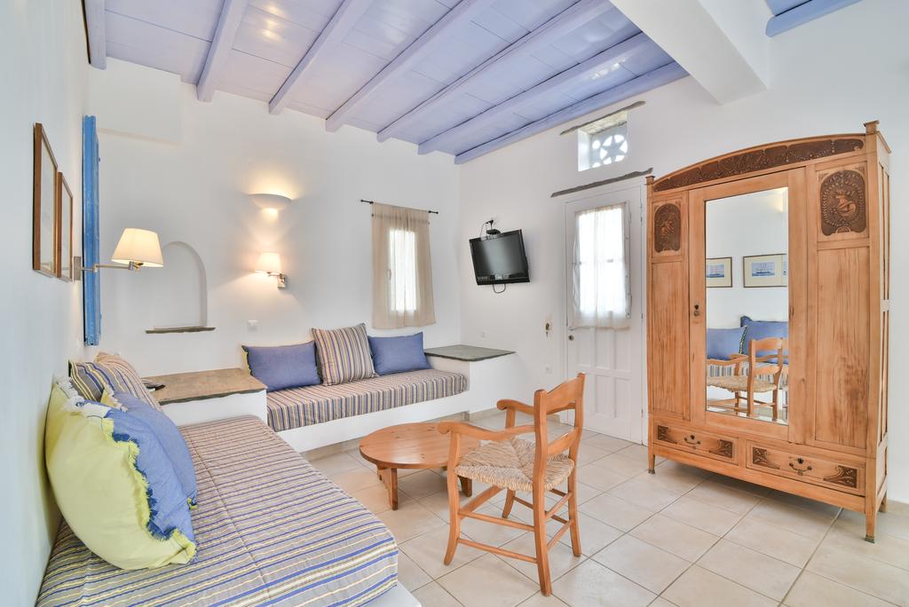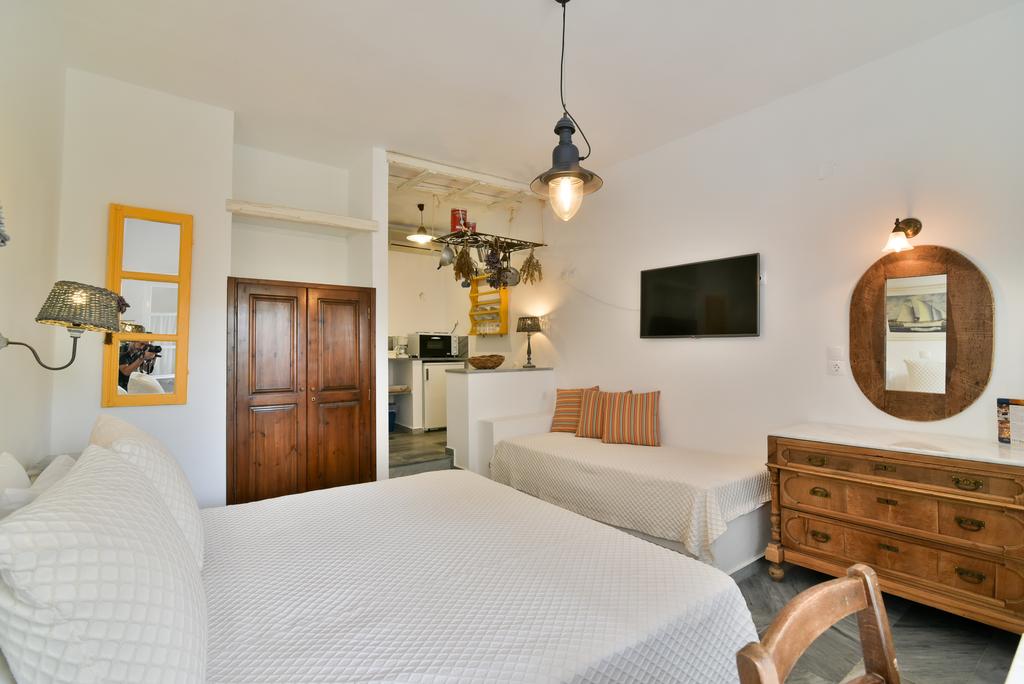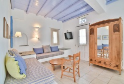 It also has an organized kitchen with a fridge, cooking rings, small oven, coffee maker and all necessary utensils. In the bathroom there is a shower and hairdryer. Among the hotel facilities of Golden Beach, it provides a beach bar where you can cool down and enjoy refreshing drinks and snacks. Tinos is well known for its unique gastronomy and you must experience it at the hotel's restaurant.