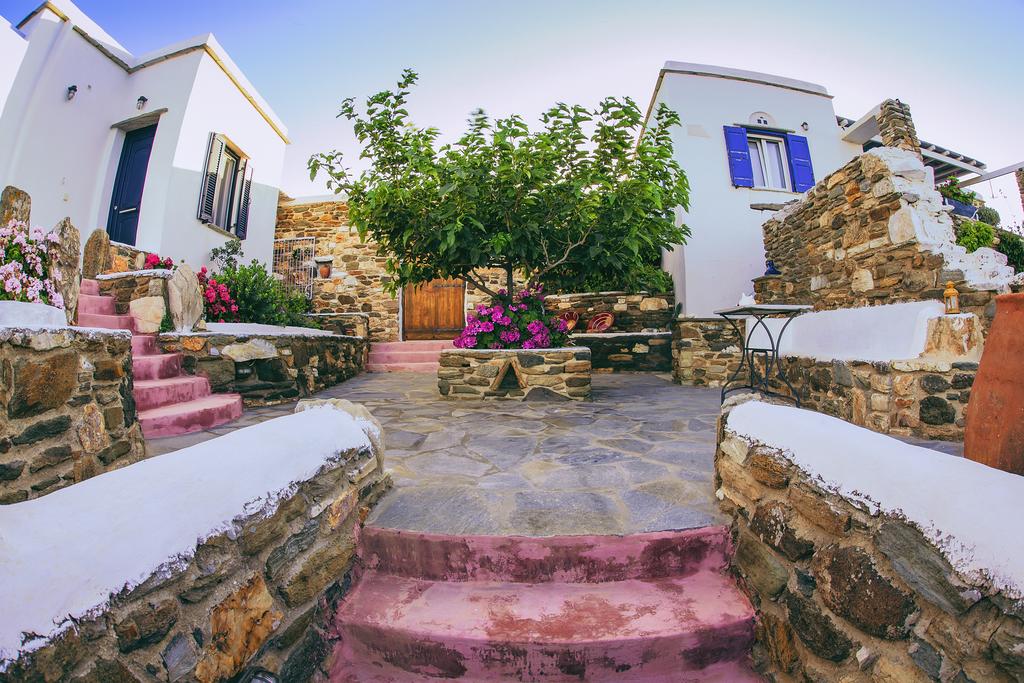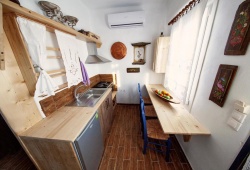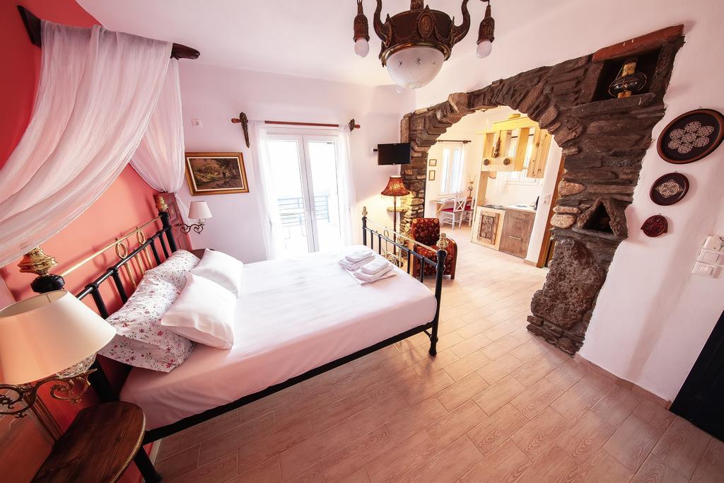 Castria Studios consist of five studios and apartments at the top of a hill, just outside the downtown of Tinos, from where they gaze upon the Aegean Sea and the island scenery. Each one of the studios has its own personal style and character, with different colours, artistic decoration, unique handmade furniture and antiques, wall paintings, and a fully equipped kitchen and bathroom for an enjoyable and comfortable stay. There is more to Castria Studios than just apartments. With the exception of the amenities mentioned above, the whole property is made up of expansive outdoor spaces including patios, gardens, and yards adorned with intricate elements that evoke the feeling of strolling through a little village. Relax by the swimming pool and throw a barbeque to gather around and have fun.