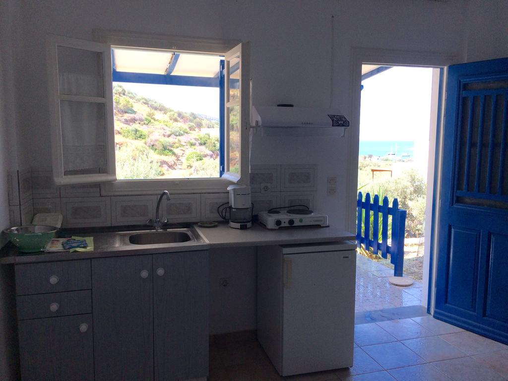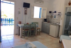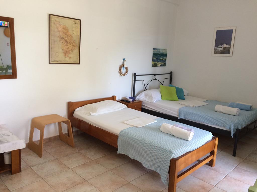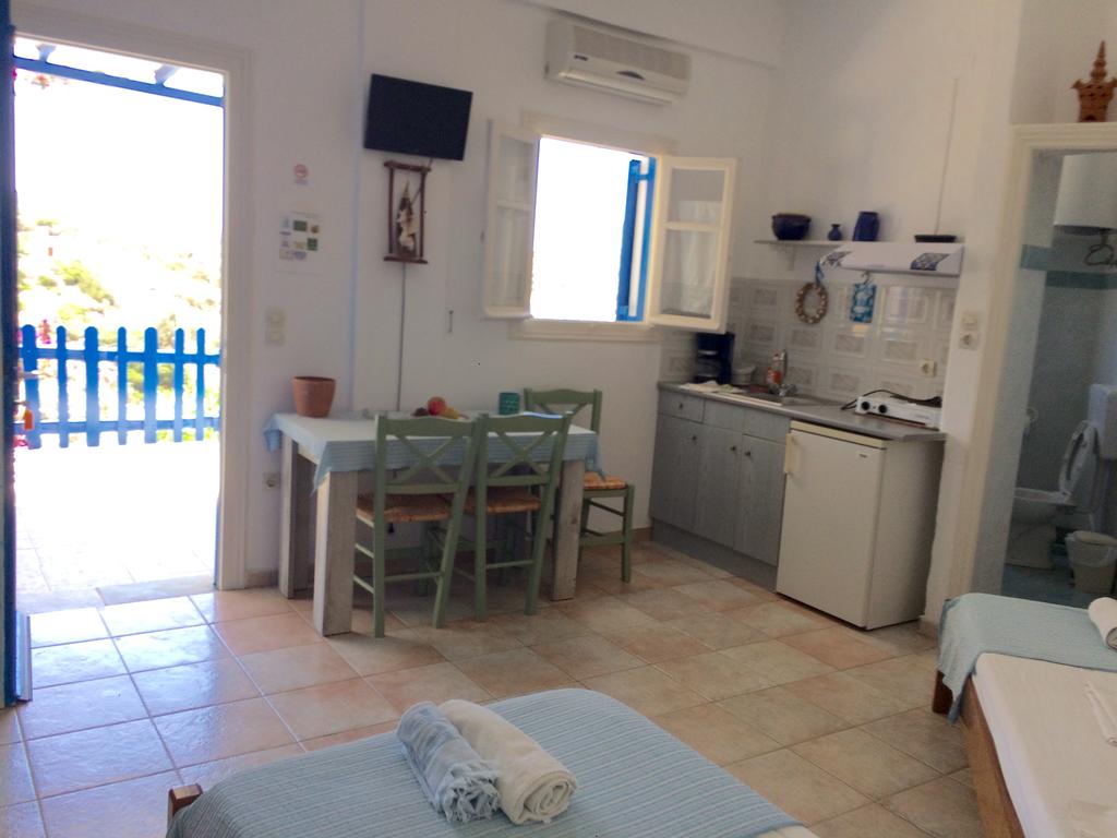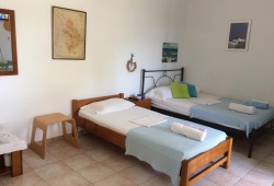 These bright, self-catering accommodation can host two or three people. In the studio, guests may choose between a double bed, three single beds, or a double and single bed for three people. A family of five may stay in the apartment thanks to the double bed and bunkbeds, which can hold up to three children under the age of fifteen. Regular cleaning is done, and the bed linens and towels are changed often. The main feature of Costas Studios is fully equipped kitchen with kitchen utensils to cook.